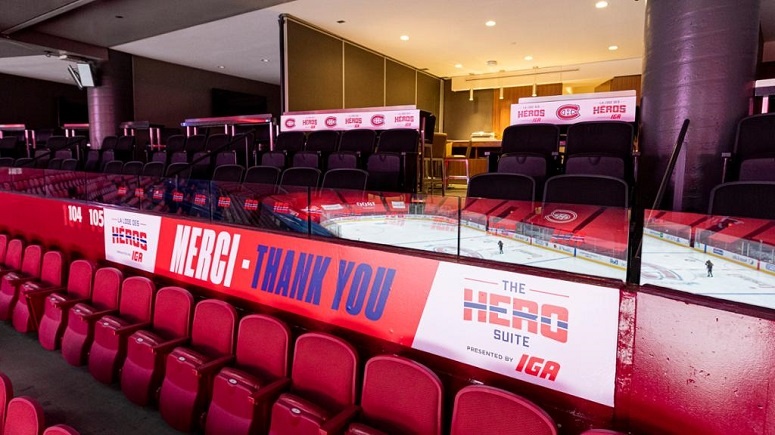 L’organisation du Canadien, en partenariat avec IGA, a invité des membres du personnel de la santé, des travailleurs essentiels et des membres de première ligne à regarder un match dans une loge spéciale nommée la « Loge des héros ».