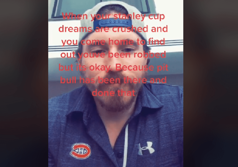 « Quand tes rêves de remporter la coupe Stanley sont brisés et que tu rentres à la maison pour finalement découvrir que tu as été cambriolé. Mais c’est correct parce que Pit Bull est déjà passé par là. »