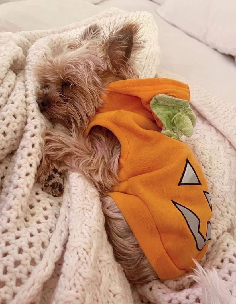 → Dodger, le chien de Cat et Tyler Toffoli, est déjà prêt pour l’Halloween. Quelle belle citrouille poilue! 🎃🐶