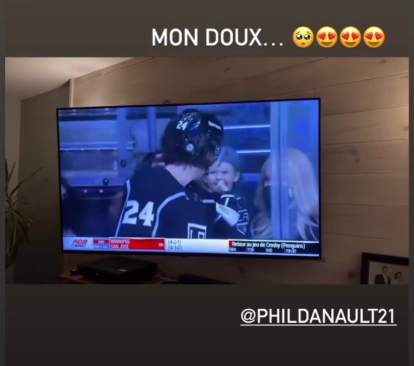 → Un beau moment pour le petit Phillip-Édouard Danault qui a vu son papa sur la patinoire avant le début de la partie entre le Canadien et les Kings.