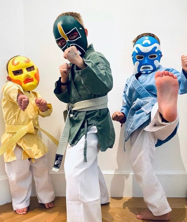 → Les enfants de Julie et Jeff Petry Boyd, Barrett et Bowen ont choisi les trois ninjas Rocky, Colt et Tum Tum pour l’Halloween.