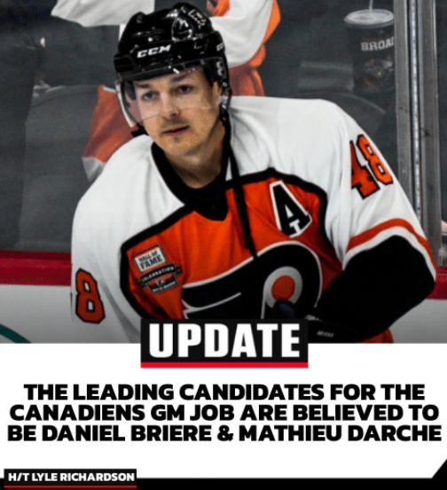 → Daniel Brière et Mathieu Darche seraient les candidats favoris pour le poste de DG du Canadien.