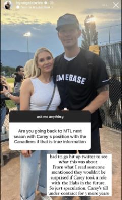 Ainsi, informée de cette rumeur lors d’une session de questions-réponses avec les fans sur son compte Instagram officiel, Angela, l’épouse du gardien vedette du Canadien de Montréal, a tenu à répondre à la question suivante :